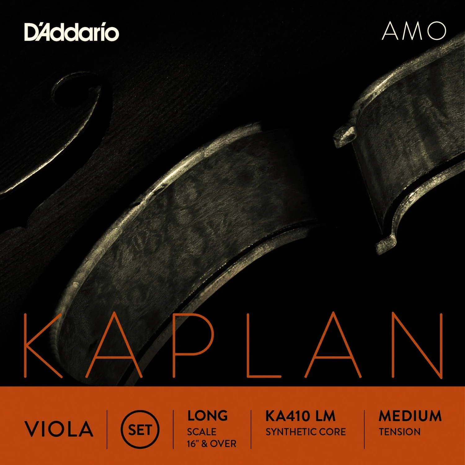 The Kaplan Amo Viola* set has a warm rich tone which complements many bright instruments. The synthetic core provides power and quick play-in time. Long-scale size are optimized for body length 16-16 1/2 inches with a playing length of 15 inches (380mm)