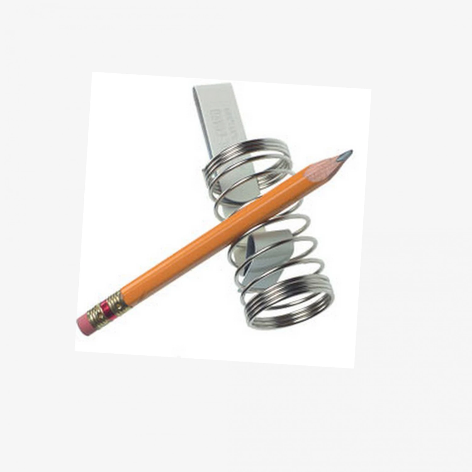 This metal music stand pencil holder keeps writing implements at the ready! Simply slides on desk; fits most folding & metal stands. Metal spiral design can accommodate a couple of pencils.